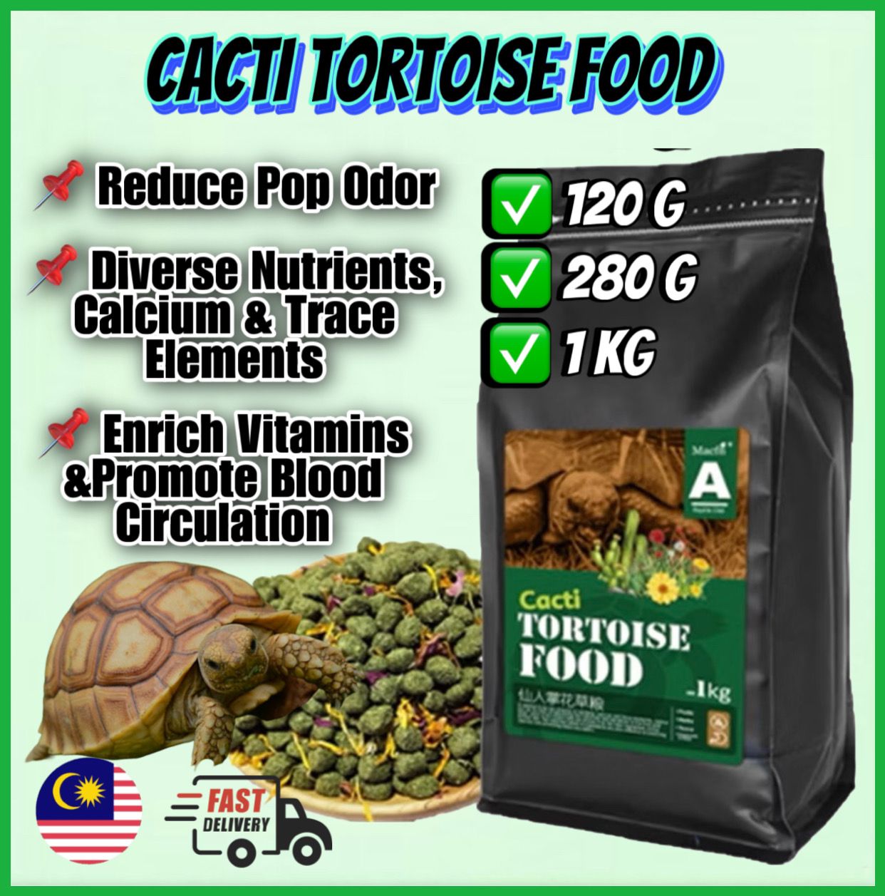 Can mix with Macfn Cacti Tortoise Food to increase tortoise appetite